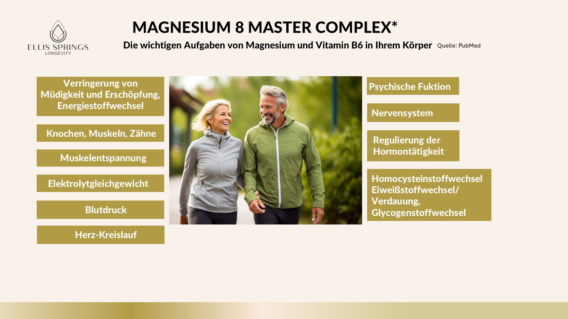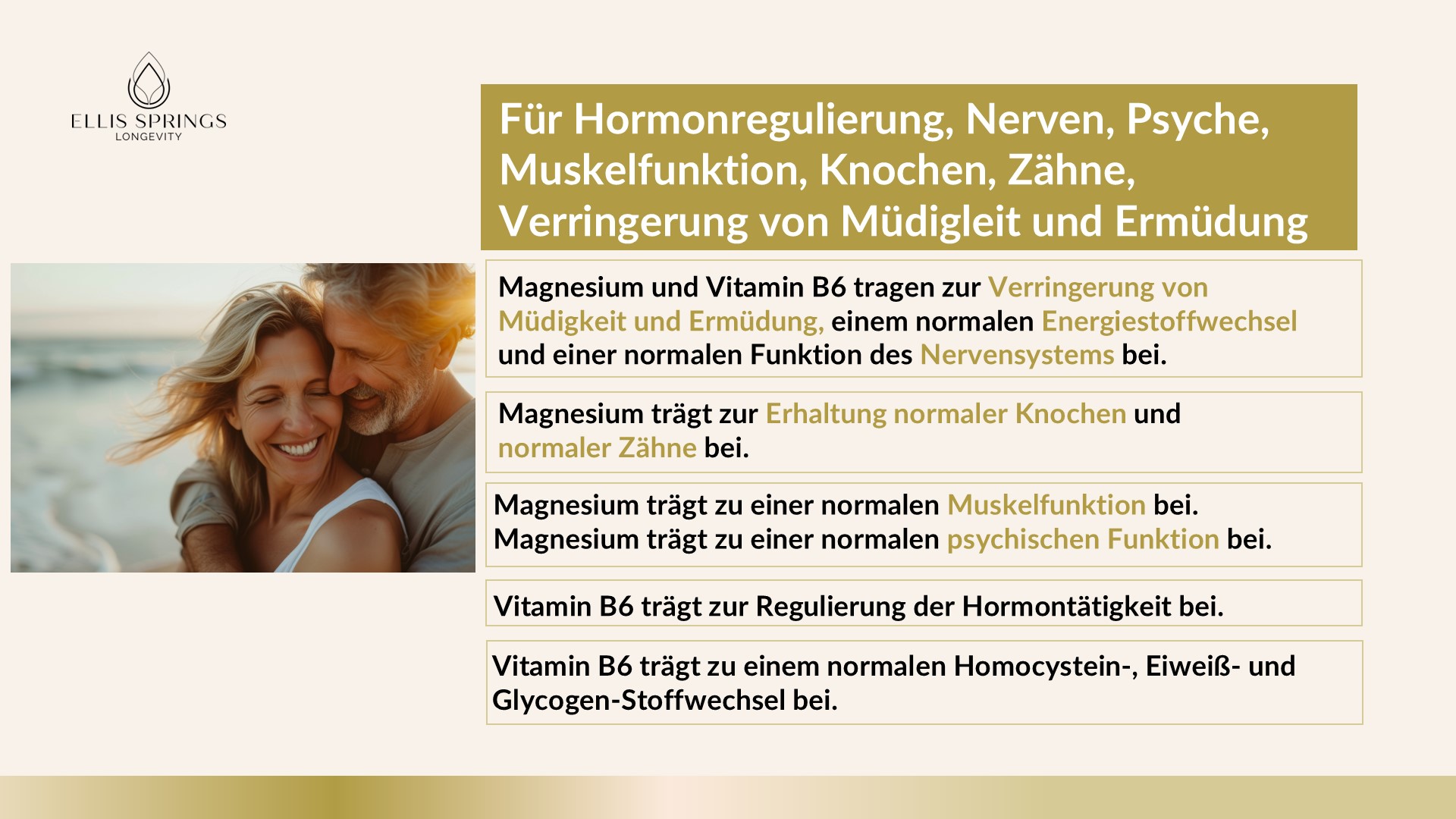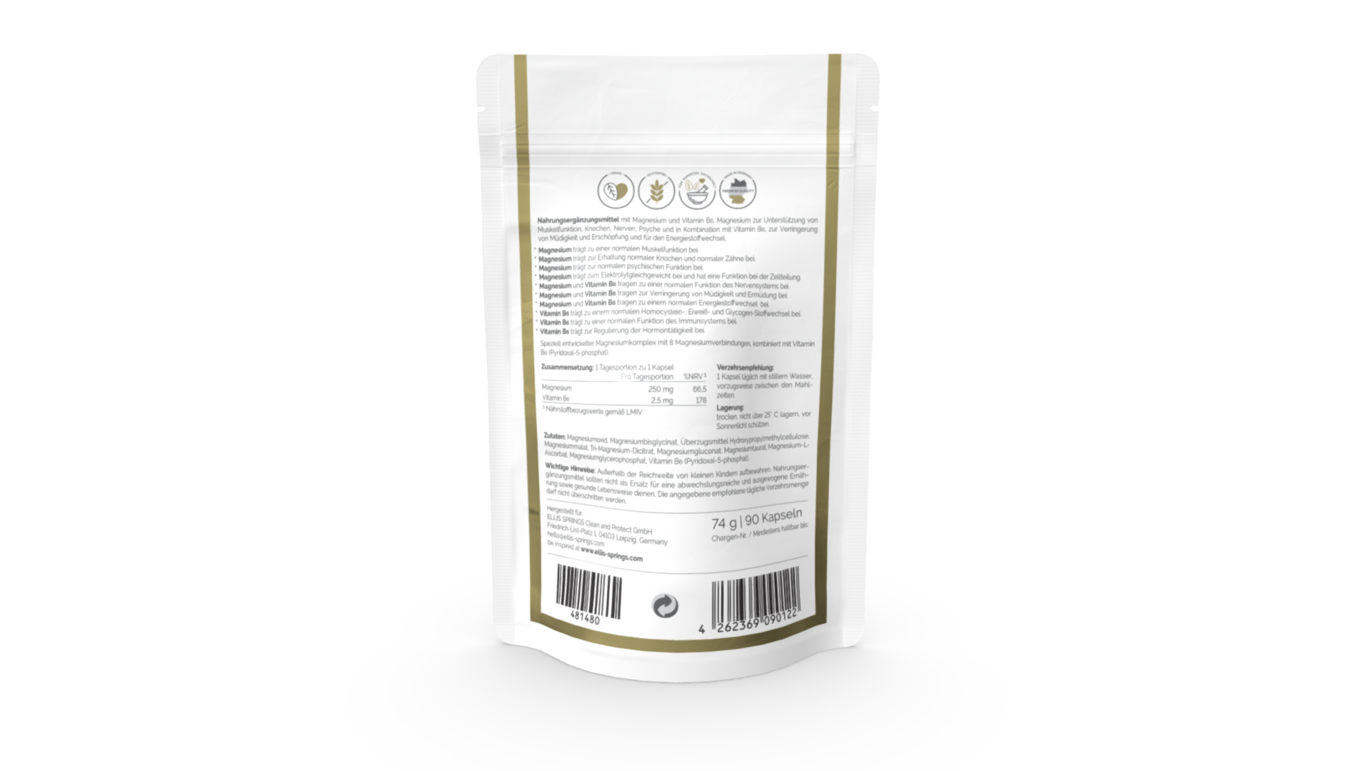 Magnesium und Vitamin B6 Complex aus der Epigenetik-und Longevity Forschung. Von erfahrenen Ärzten, Apothekern und Epigenetik-Spezialisten entwickelt zur Unterstützung von Muskelfunktion, Knochen, Nerven, Psyche, gegen Müdigkeit und Erschöpfung und für den Energiestoffwechsel. Im Standbodenbeutel abgefüllt.
